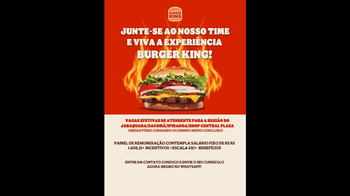 🍔 Vaga: Atendente de Restaurante –– Burger King